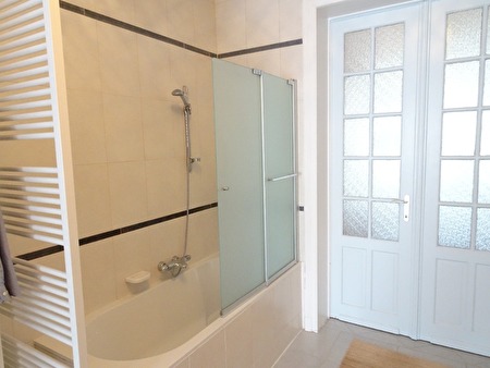 Robuust badscherm van Cesana met 2 luiken van veiligheidsglas met handgreep.Hoogte: 150cm | Breedte 2 luiken: 148cm |Lengte handgreep chroom: 48cm