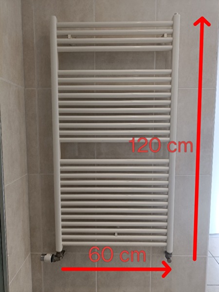 Mooie sier- (4 stuks) en gewone radiatoren (3 stuks) met afmetingen (H x B x D) in cm.