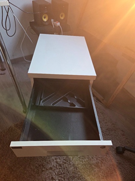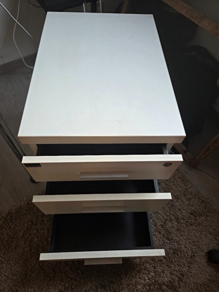 3 lades, 59 cm hoog en 15 cm breed met wieltjes