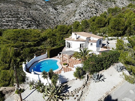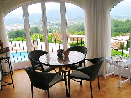 De villa is ideaal georiënteerd (zon van 's morgens tot 's avonds) en prachtig gelegen op een terrein van 1.100 m² bovenaan de Jalonvallei aan de Costa Blanca in Spanje.