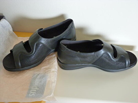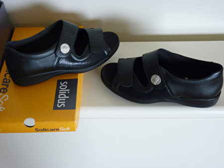 SOLICARE SOFT Sandaal+StretchZomerschoen Solicare Soft voor personen met moeilijke voet. Merk: Solidus - Type Lia: Open teen + Gesloten Hiel - Kleur: Zwart - wijdte: K.