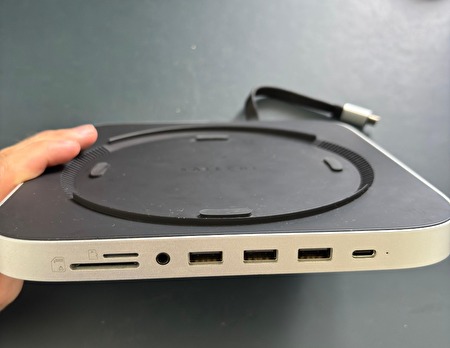 Een elegante USB-C hub die perfect onder een Apple Mac Mini of Mac Studio past. Voegt makkelijk toegankelijke poorten toe aan de voorkant: Micro/SD-kaartlezer, audiojack, 3x USB-A en 1x USB-C.Staat: Zeer goede, gebruikte staat. Functioneert perfect.