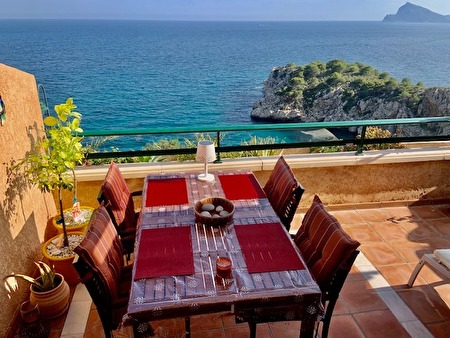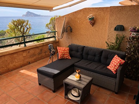 Grandioos open zeezicht vanop zonnig terras, 45' minuten van luchthaven Alicante. Beschikt over eigen privé parking, Wifi, 2 slaapkamers, 2 badkamers, airco...Licentie: VT-478095-A - huur in alle veiligheid rechtstreeks bij eigenaar.