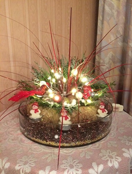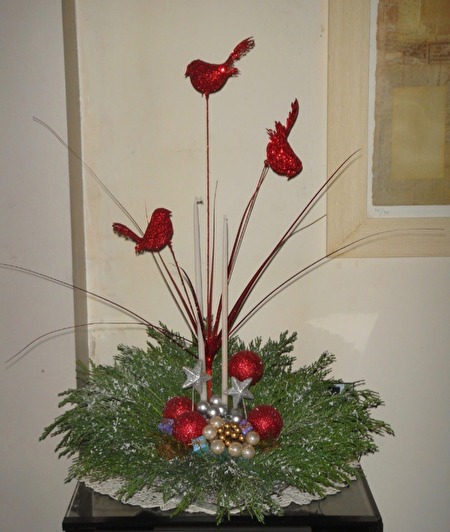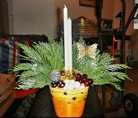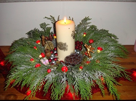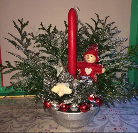 Kerststukjes kunnen gemaakt worden volgens uw wensen: bv. voorkeur kleur, met of zonder lichtjes, voor kinderen, ... of u kiest voor een verrassing.