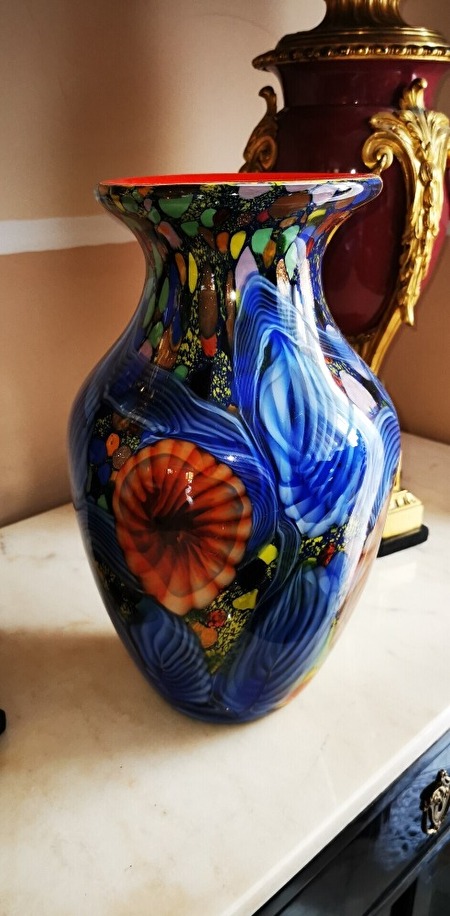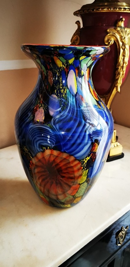 Glazen kunstwerk, prachtige heldere kleuren. Afmetingen: 36 cm hoog, gewicht: 5-6 kg, in perfecte staat. 550 euro plus verzendkosten.