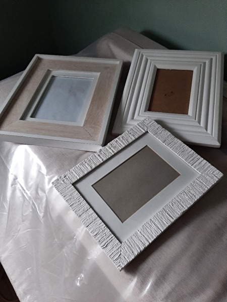 3 fotokaders, kleur wit, om op te hangen.