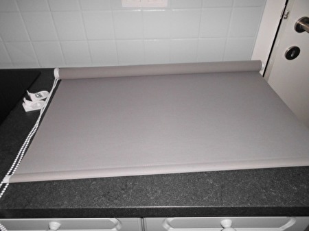 rolgordijn licht grijs (nooit gebruikt) 76x190 cm + bevestigingssysteem
