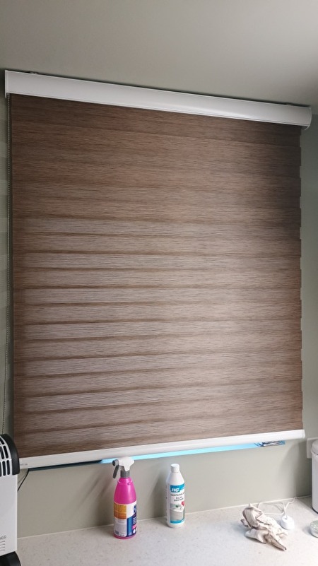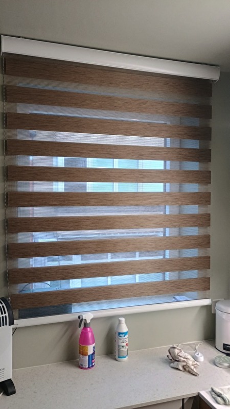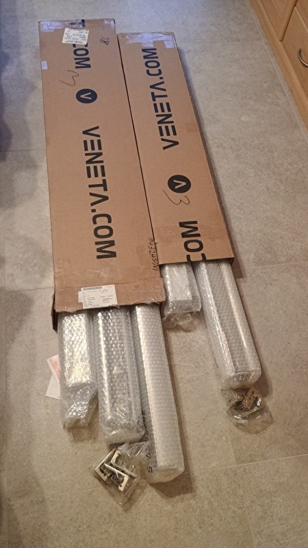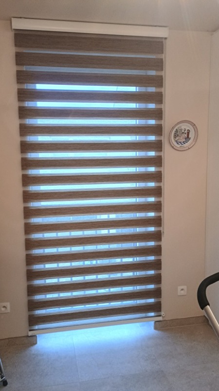 2 X rolgordijnen B 96 - H 250 cm kleur Beige verduisterend.2 X rolgordijnen B 114 - H 140 cm kleur brons semi transparant