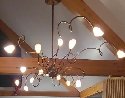 Veelarmige luchter en 5 wandlampen in dezelfde stijl, in nieuwstaat,