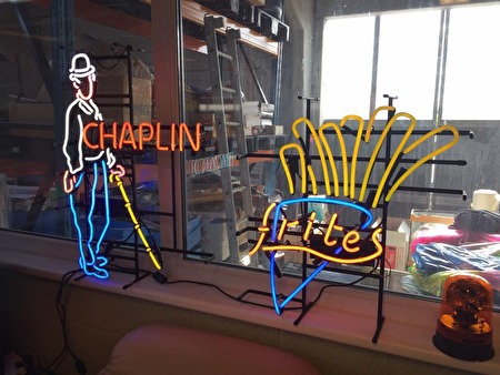 Zeer grote 4 kleuren neon “ Charly chaplin”.