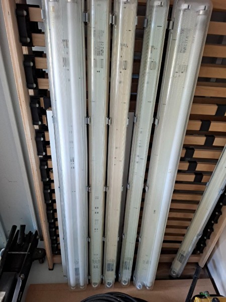 tl lampen met en zonder tl buis ze doen het allemaal enkel 5,00 euro dubbele 10,00 euro, een enkele voor onderdelen gratis