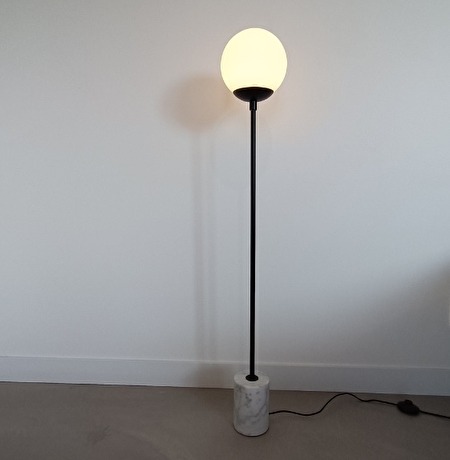 Deze stijlvolle Vloerlamp 5254 voegt een luxueus gevoel toe aan jouw interieur met dank aan zijn witte marmeren voet en strak modern frame.; Aankoopprijs 168,30 €