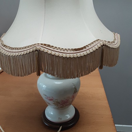 Stenen tafellamp Limoges, op houten voet. H. 60 cm, br. 40 cm.