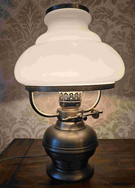 Tinnen tafellamp stijl: petroleumlamp qua vorm (hoogte 40 cm)