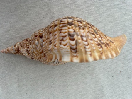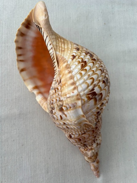 Grote triton-trompetschelp met totale lengte van 30 cm