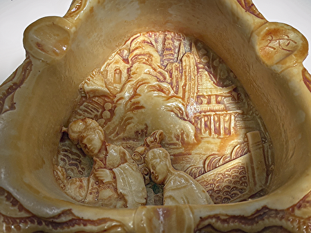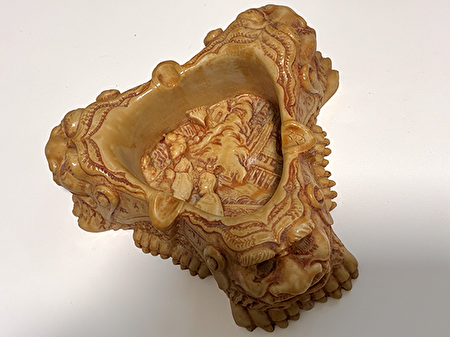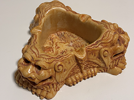 Mooi uitgewerkte asbak in hars, zeldzaam, met Chinese draken. Geen beschadigingen. Ongeveer 18cm breed en 6,5cm hoog.1,250kg. Op te halen.