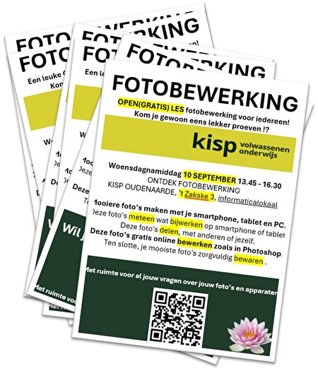 OPEN EN GRATIS LES FOTOBEWERKING WOENSDAG 10 SEPTEMBER