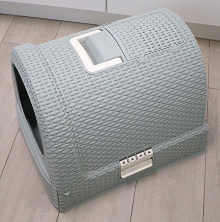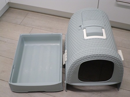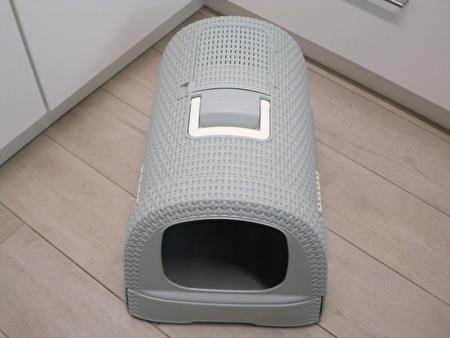 Lichtegrijze Curver kattenbak.
