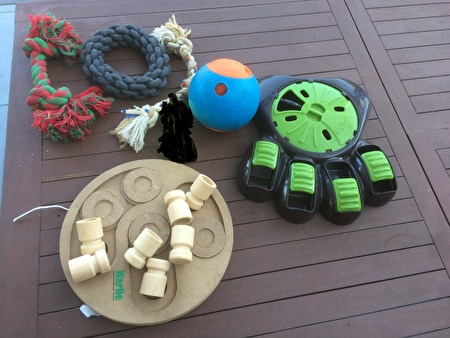 - Honden speeltjes, ballen en aanleren zoek spelletjes.