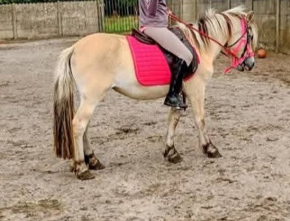 Dappere 4 jarige 100 procent kleine fjorden merrie enkel voor goed huisje .Bomproof buiten , wel nog de juiste knopjes voor galop uitvinden .