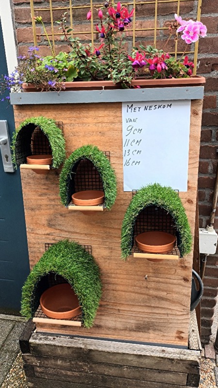 Nestkasten zijn er in diverse formaten met stenen nestschaal van 9cm diameter of 11cm of 13cm of 16cm, ook grotere nesten met rietnesten van 18cm of 22cm. Deze zijn voor Europese en Tropische vogels, ook Duiven. Verzenden is mogelijk. Prijs is vanaf 9,00 Euro per stuk.prijs : 9 €