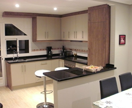 Intern: Keuken en living met airconditioning en directe toegang tot het terras , tuin, solarium en het zwembad. Nieuwe keuken volledig uitgerust met keramische kookplaat, koelkast, diepvriezer, vaatwasser, combioven, koffiezet, Senseo en alle andere gebruiksvoorwerpen voor de keuken. Voorzien van tapkraan voor drinkbaar water, geen gesleur met flessenwater.