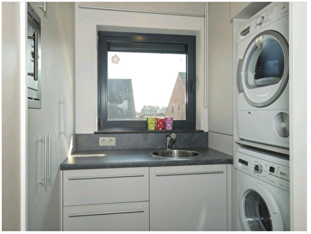 Mooi duplex appartement gelegen in een rustige woonwijk te Lozen. Het gebouw bestaat uit slechts 4 appartementen met elk een privatieve ingang. Via de inkomhal met gastentoilet komen we terecht in de ruime woonkamer met open keuken, deze is voorzien van de nodige inbouwtoestellen met uitzondering van een frigo, deze dien jij te installeren. Hiernaast treffen we een berging/wasplaats met maatkasten, vriezer en combi-oven. Door de grote glaspartij is de woonkamer verbonden met het terras, die een mooi uitzicht biedt op de groene omgeving. Op de verdieping treffen we 2 ruime slaapkamers, dressing en badkamer met douche, bad, dubbele wastafel en toilet. Verder is er een zolderruimte die bereikbaar is via de vlizotrap. Het appartement beschikt tevens over een private parkeerplaats en een private garagebox.Bijzonderheden: