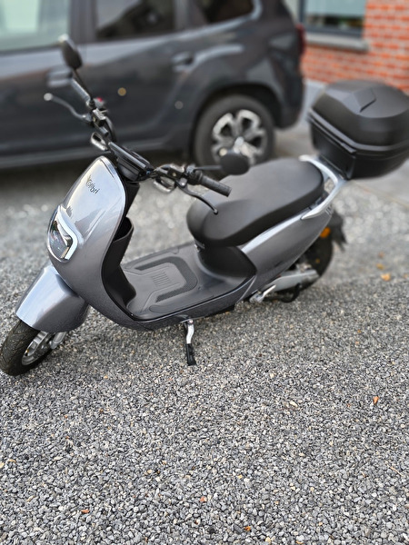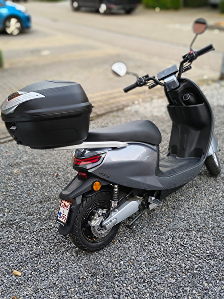 Deze scooter heb ik gekocht voor mijn vrouw maar heeft er amper op gereden,amper 87km,moet weg wegens rugproblemen. Heeft nog meer dan 1 jaar garantie, ingeschreven in augustus 2024. Bezit een krachtige uitneembare batterij van 2000W( makkelijk om mee te nemen op bv appartement om te laden) autonomie meer dan 80km. Deze scooter kan ook 45 km per uur rijden (loskoppelen fiche) Grote topkoffer erbij met helm alles is nieuw.Originele factuur krijg je erbij.