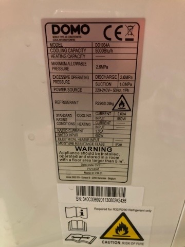 Mobiele Airco unit DOMO DO1034A van 5000BTU met alle toebehoren zoals afvoerslag en afstandsbediening. Het toestel verkeert in goede werkende toestand en heeft weinig draaiuren. Compacte unit en handig voor in bijvoorbeeld de slaapkamer of een werkkamer. Thermostaat kan je instellen van 17 tot 30°C en ideaal voor ruimtes tot een +/- 27m2 . Enkel ophalen mogelijk.prijs : 50 €