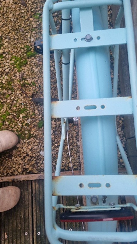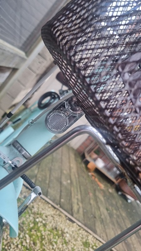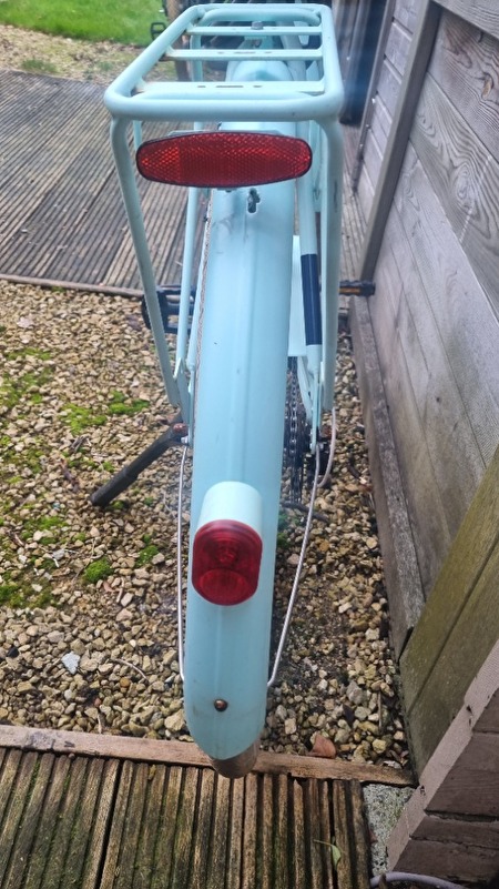 Deze fiets met het kleur turquoise is gekocht in 2018 bij Decathlon. Alles is nig stees inorde maar kan een smeerbeurt gebruiken .De verlichting werkt nog , remmen doen het nog & banden zijn in goede staat .