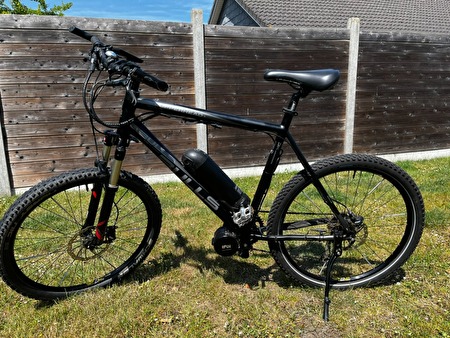 Aluminium Bulls Copperhead 3 omgebouwd naar elektrische mtb met Bafang 8fun middenmotor 250w 36v met batterij van 10,4Ah en Bafang c965 controller.Bandenmaat 26 inch, framemaat 57