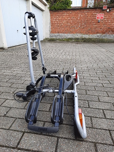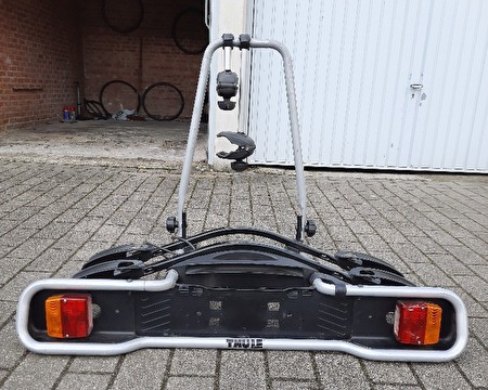 Mooie gebruikte Spinder Hawk fietsendrager voor 2 fietsen of 1x electrische en 1x normale fiets. De fietsendrager is kantelbaar en makkelijk op de trekhaak te monteren.