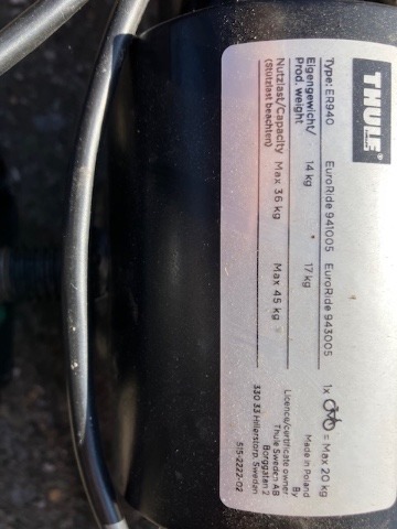 SINT-AMANDSBERG • Thule EP 916 fietsendrager voor twee fietsen. Maximale belastbaarheid: 60kg (maximaal 30 per fiets). Gewicht fietsendrager: 18,9kg. 7polig met gemonteerde verloopstekker voor 13polig.
