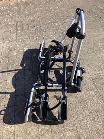 BUDELNL • Mooie gebruikte Spinder Hawk fietsendrager voor 2 fietsen of 1x electrische en 1x normale fiets. De fietsendrager is kantelbaar en makkelijk op de trekhaak te monteren. meer...