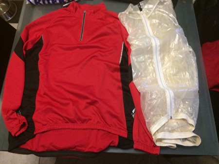 koerspak, koerstruitjes, koersbroeken lang/kort, been & arm stukken, thermisch- & regenjas, schoenen spd maat 43 - 44