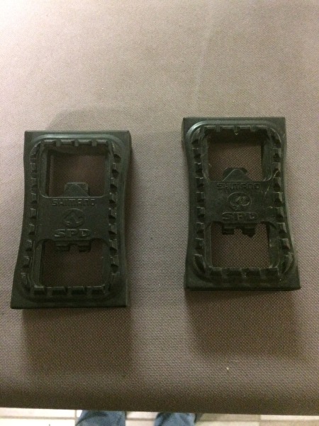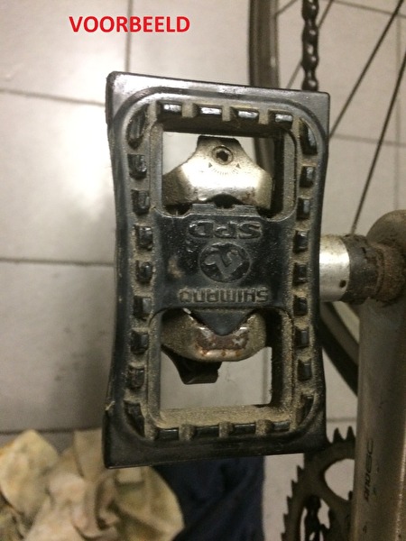 Zwarte inklik pedalen shimano voor SPD PD-M520 met reflector om te fietsen met gewone schoenen, inklikbaar op SPD PD-M520 en mogelijk nog op andere shimano pedalen.15,-€