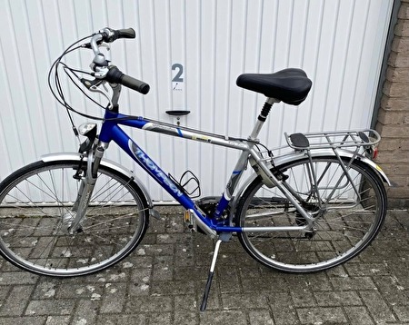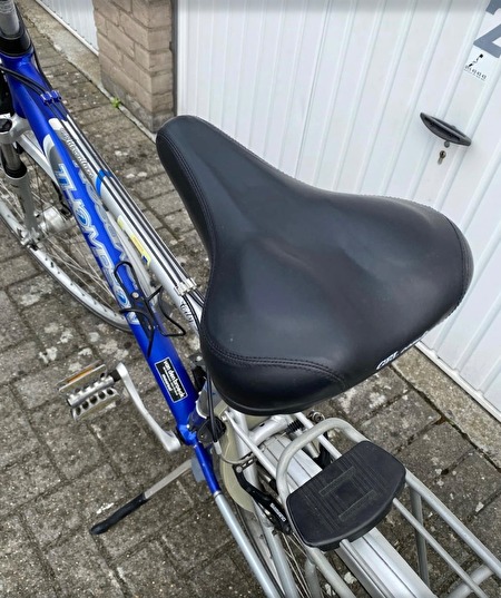 AALSTVerende voorvork, verende zadelstang, bekrachtigde remmen, Shimano versnellingen aan het stuur, dynamo in het wiel, achterlicht met bewegingsmelder en schemerschakelaar.