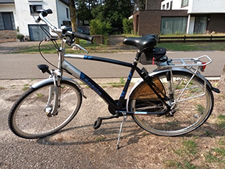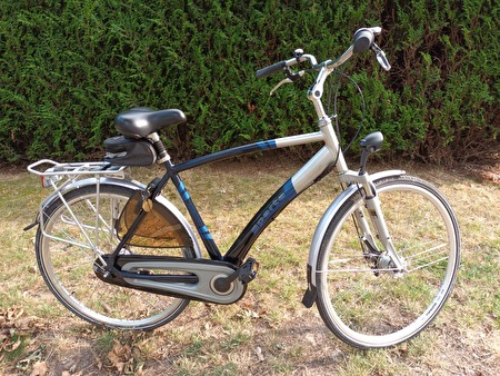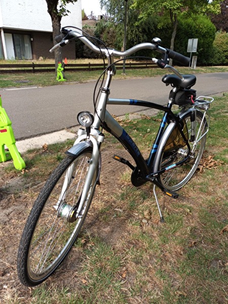 en opbergruimte in zadeltas tirette klik-systeem, Axa compacte handpomp Fiets vanwege gezondheidsredenen zéér weinig gebruikt, schitterende staat, en heeft dit jaar nog een volledig onderhoud gekregen bij fietsenmaker.