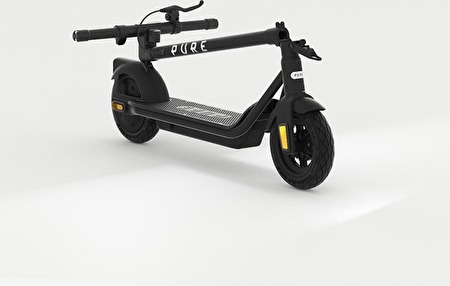 De zwarte Pure Air 3 elektrische step van Pure Electric is robuust en heeft een topsnelheid van 25 km/u. Hij biedt een soepele en comfortabele rijervaring en je begeeft je er veilig mee in het verkeer.