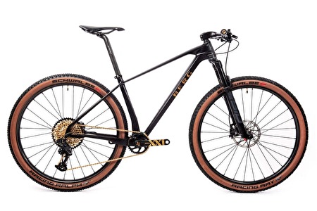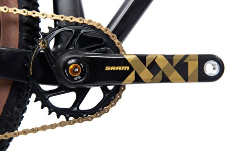 Voor de afmontage kan men alle kanten uit maar het hoeft geen betoog dat er op een dergelijk licht frame ook best gekozen wordt voor high-end onderdelen. Zo werd bij dit frame met gouden decals gekozen voor een Sram XX1 Eagle aandrijflijn met gouden toets. Voor de remmen werd dan gekozen voor de topremmen uit het Shimanogamma. Met de hydraulische Shimano Deore XT is men gegarandeerd van een betrouwbare remkracht als die nodig is.