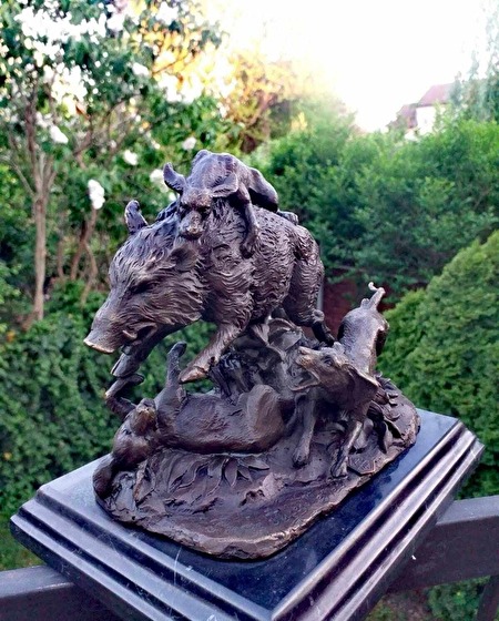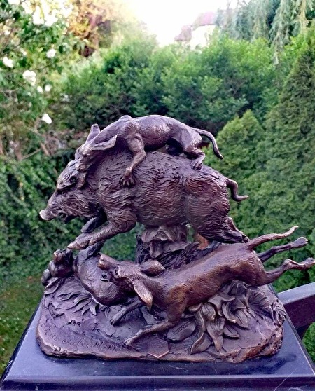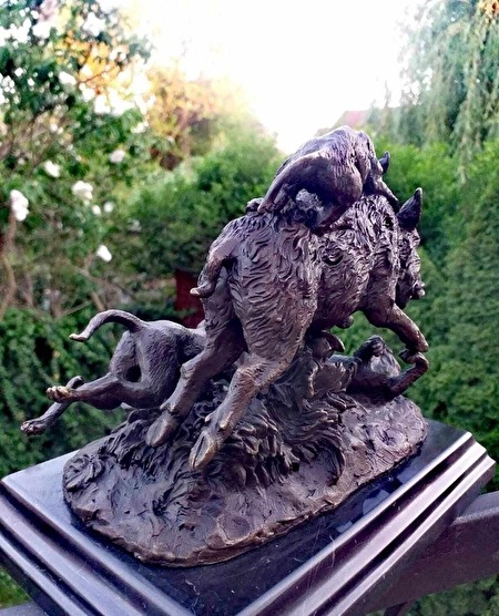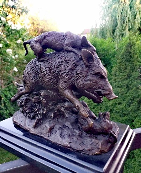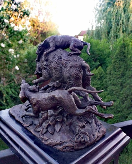 GEDETAILLEERD BRONZEN BEELD – JACHTHONDEN DIE EEN WILD ZWIJN AANVALLEN