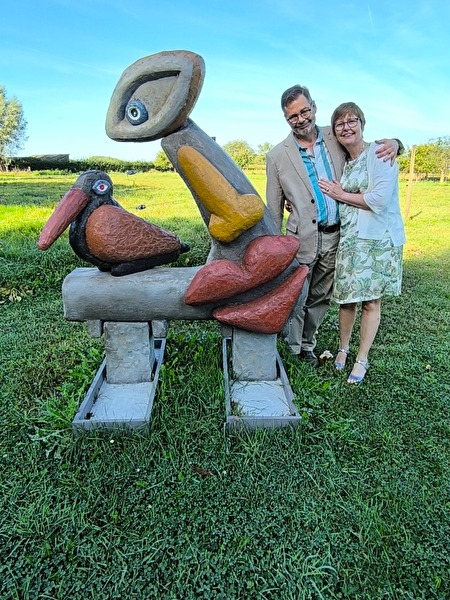 GROOT UNIEK TUINBEELD IN BETON WEER BESTENDING