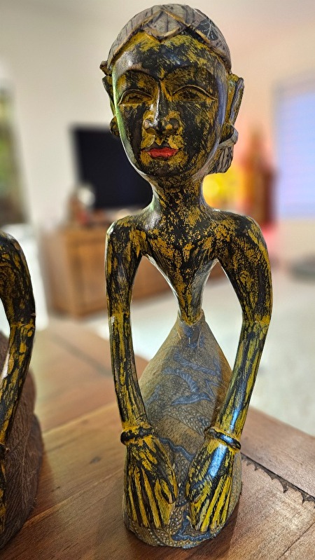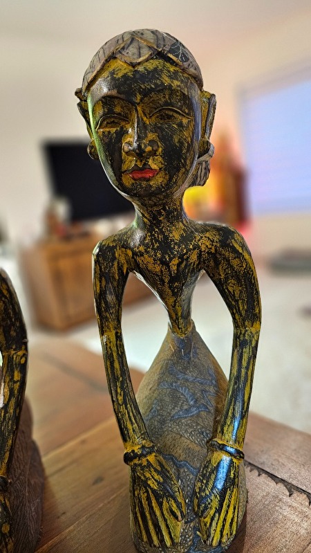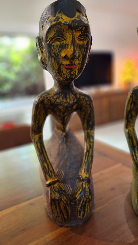 HANDGESNEDEN HOUTEN BALINESE BEELDEN.