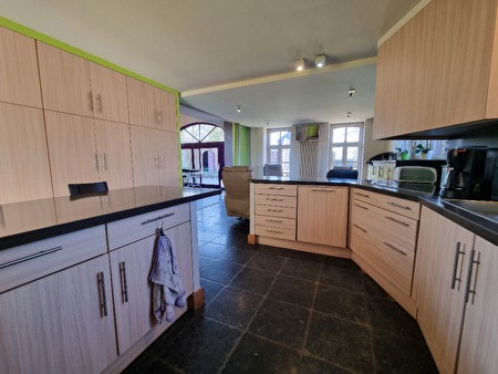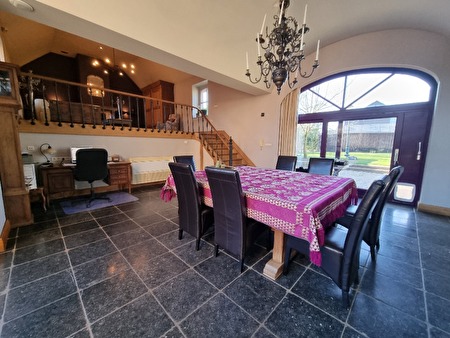 De hoogwaardige materialen zoals eiken kasteelvloer, blauwe arduinen vloer, eiken trappen, deuren en ramen en een rustige, groene ligging maken van deze boerderij een uitzonderlijke woonervaring voor wie op zoek is naar ruimte, comfort en privacy.