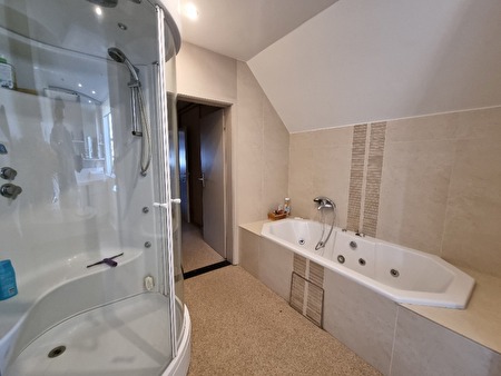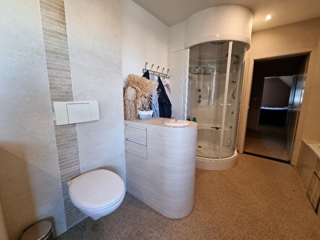 Alle slpks in deze boerderij zijn royaal bemeten. De master bedroom springt eruit dankzij het panoramische uitzicht op de tuin en de toegang tot de luxueuze badk. met toilet, jacuzzi ligbad en douche. Tussen de badk. en master bedroom is een volledig ingerichte dressing.