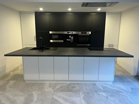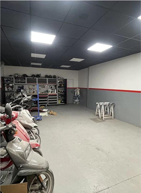Het gelijkvloers werd volledig gerenoveerd en omvat een moderne showroom, een garage waar aan wagens kan worden gesleuteld, een bureauruimte en een toilet. De ideale combinatie voor wie wonen en werken wil combineren op één locatie.