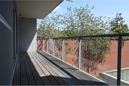 Modern, groot appartement met 2 slaapkamers, badkamer met toilet en ligbad, douchekamer, berging, apart toilet, ingerichte keuken en L-vormige living te huur