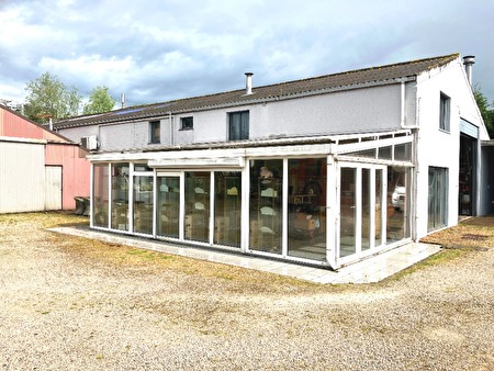 Het bedrijfsgebouw is samengesteld uit meerdere afzonderlijke ruimtes verbonden met elkaar: