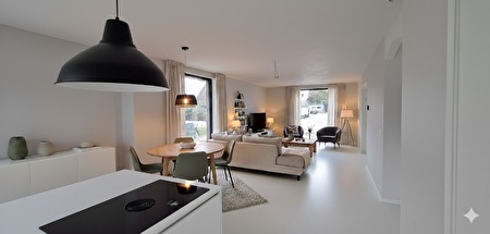 U wordt verwelkomd in een nette inkomhal met gastentoilet. De leefruimte is het hart van de woning, badend in het licht dankzij grote raampartijen die het open karakter versterken en een naadloze overgang naar de tuin creëren.
