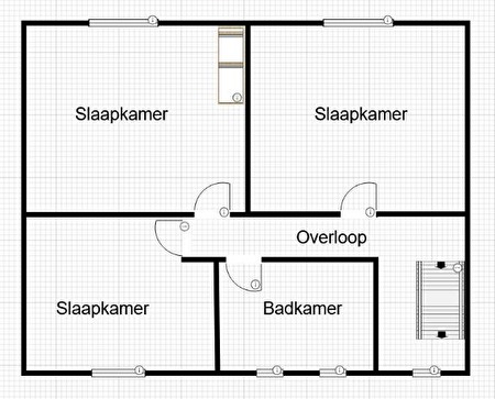 - 1e verdieping: Overloop, badkamer met toilet en bad, 3 slaapkamers.